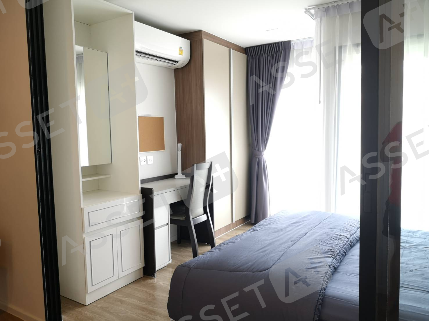 เช่า 1 ห้องนอน เตียงเดี่ยว built in โต๊ะทำงาน มุมแต่งหน้า อาคาร A